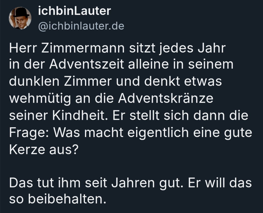 Herr Zimmermann muss oft brechen, wenn er ein Glas Bier trinkt. Er denkt dann, dass er mal ein Bierglas aus Panzerglas oder aus Gorillaglas bauen möchte, weil das ja nicht bricht. Dann geht es ihm immer direkt viel besser.